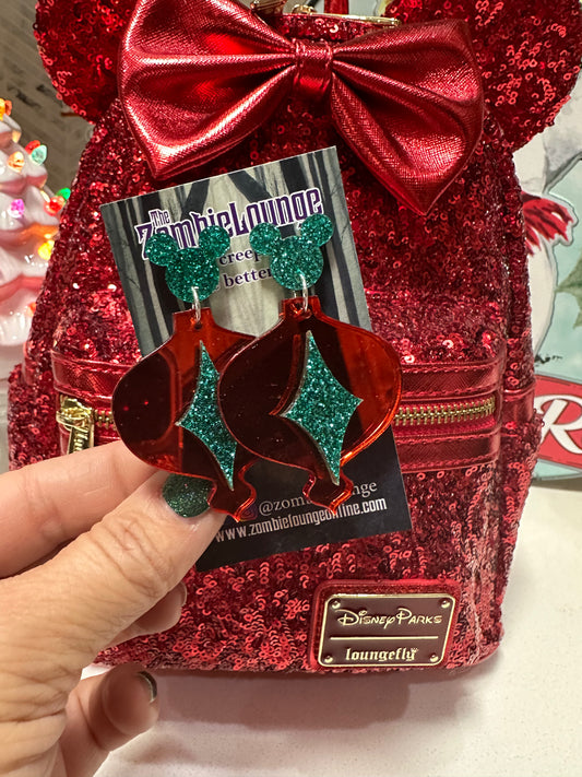 Retro Christmas Ornament Mouse Earrings