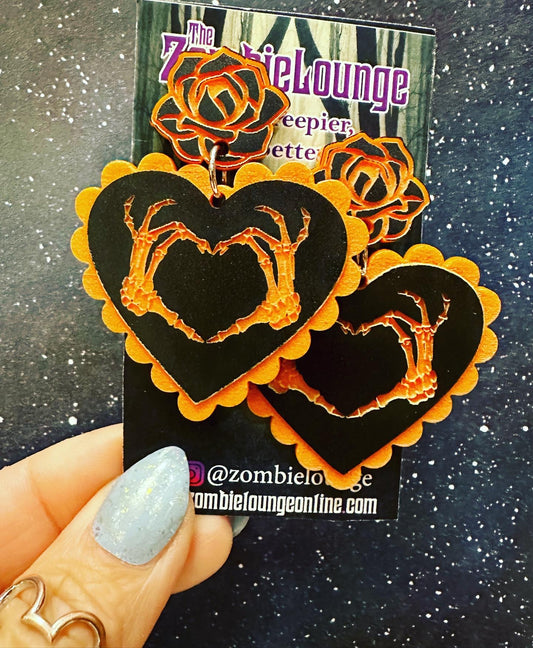 Skeleton Hands Heart Earrings