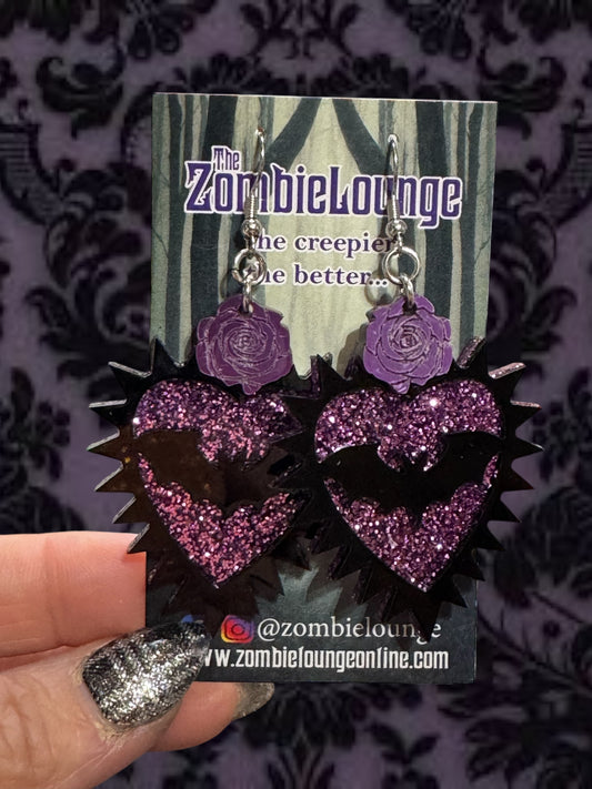 Gothic Bat Heart Earrings