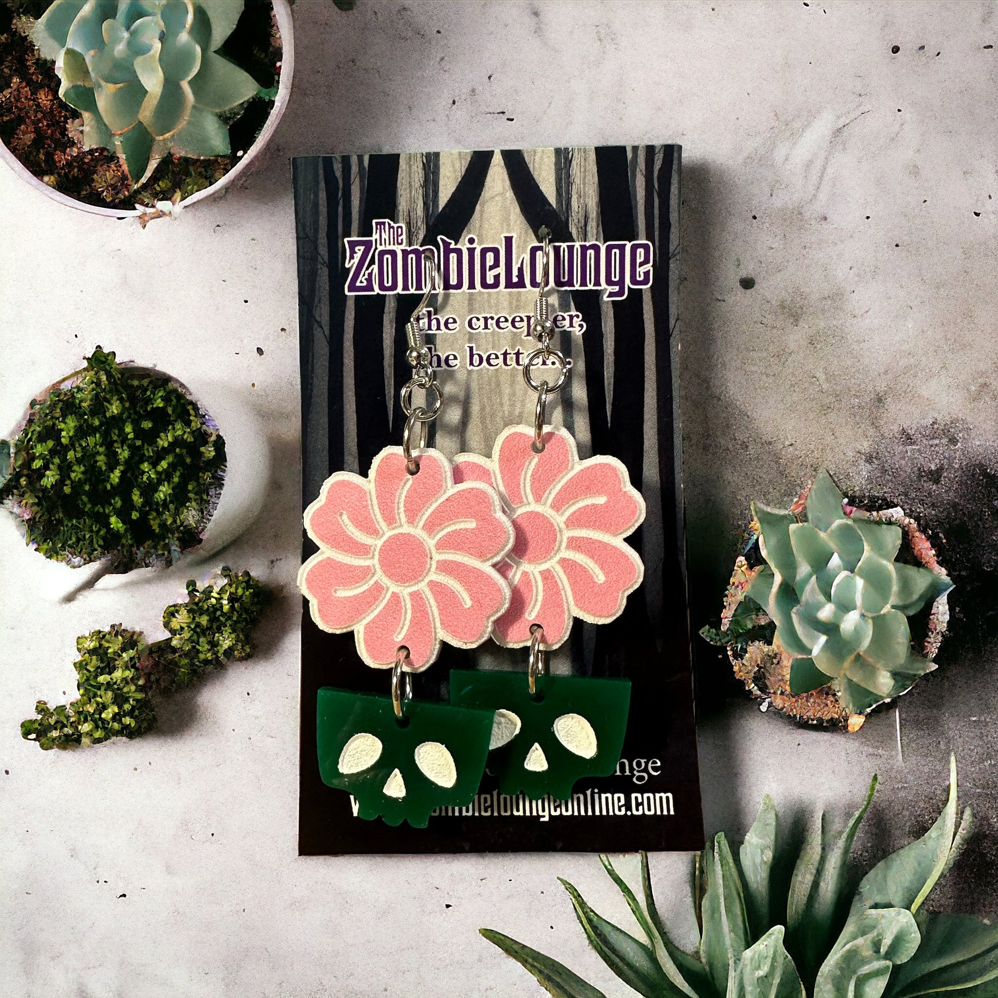 Skull pot hanging earrings s choose from cactus or flower.