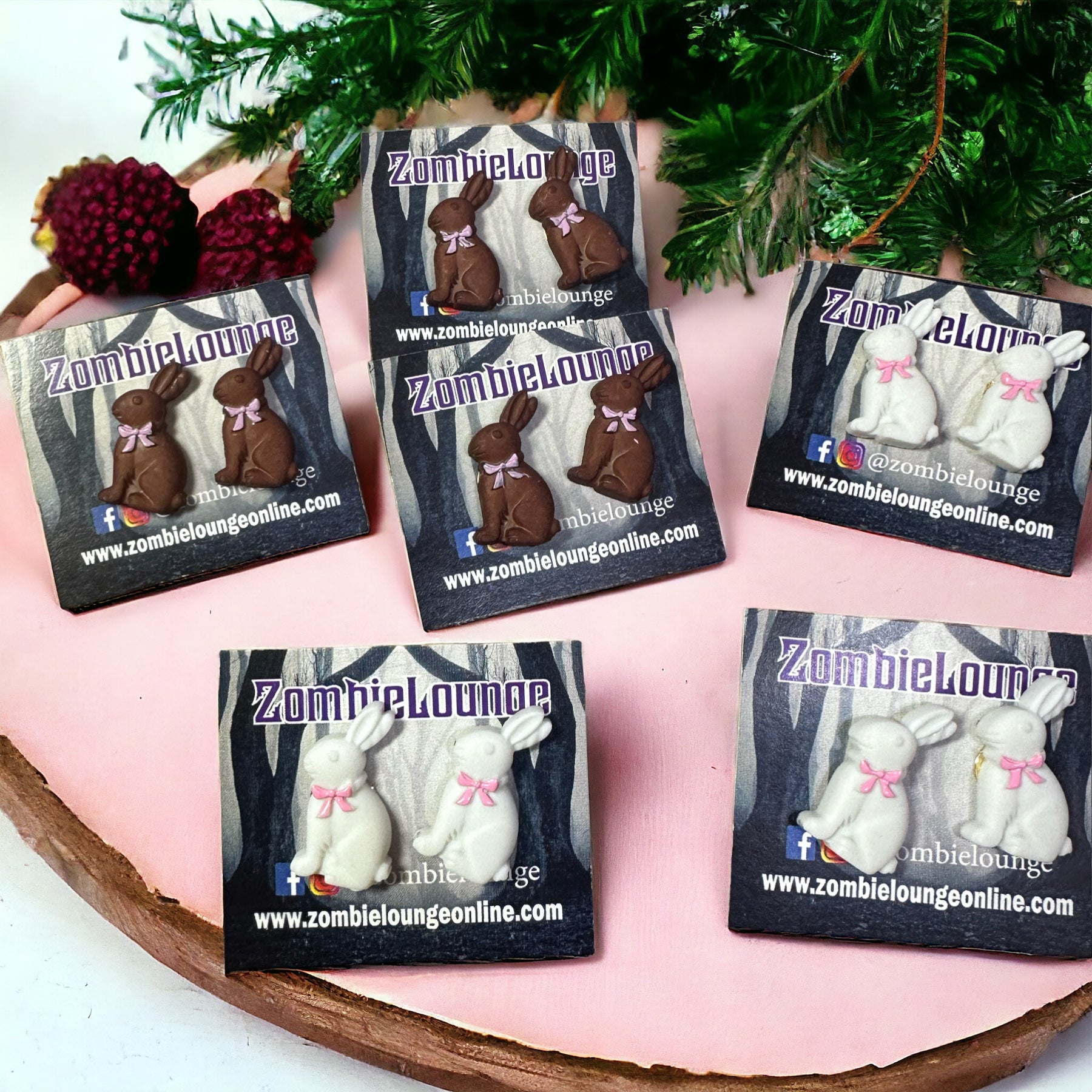 Chocolate Easter bunny stud earrings in milk chocolate or white chocolate