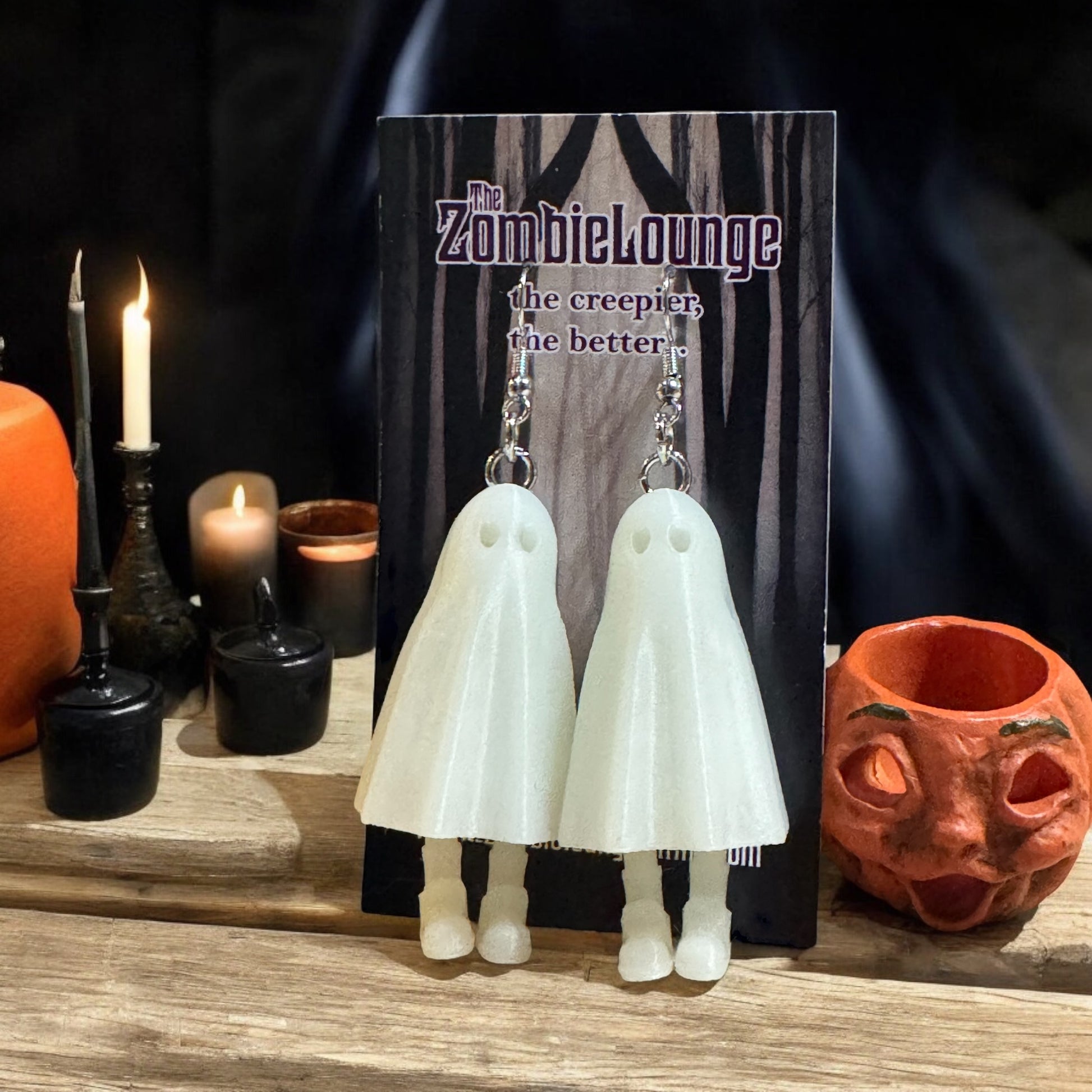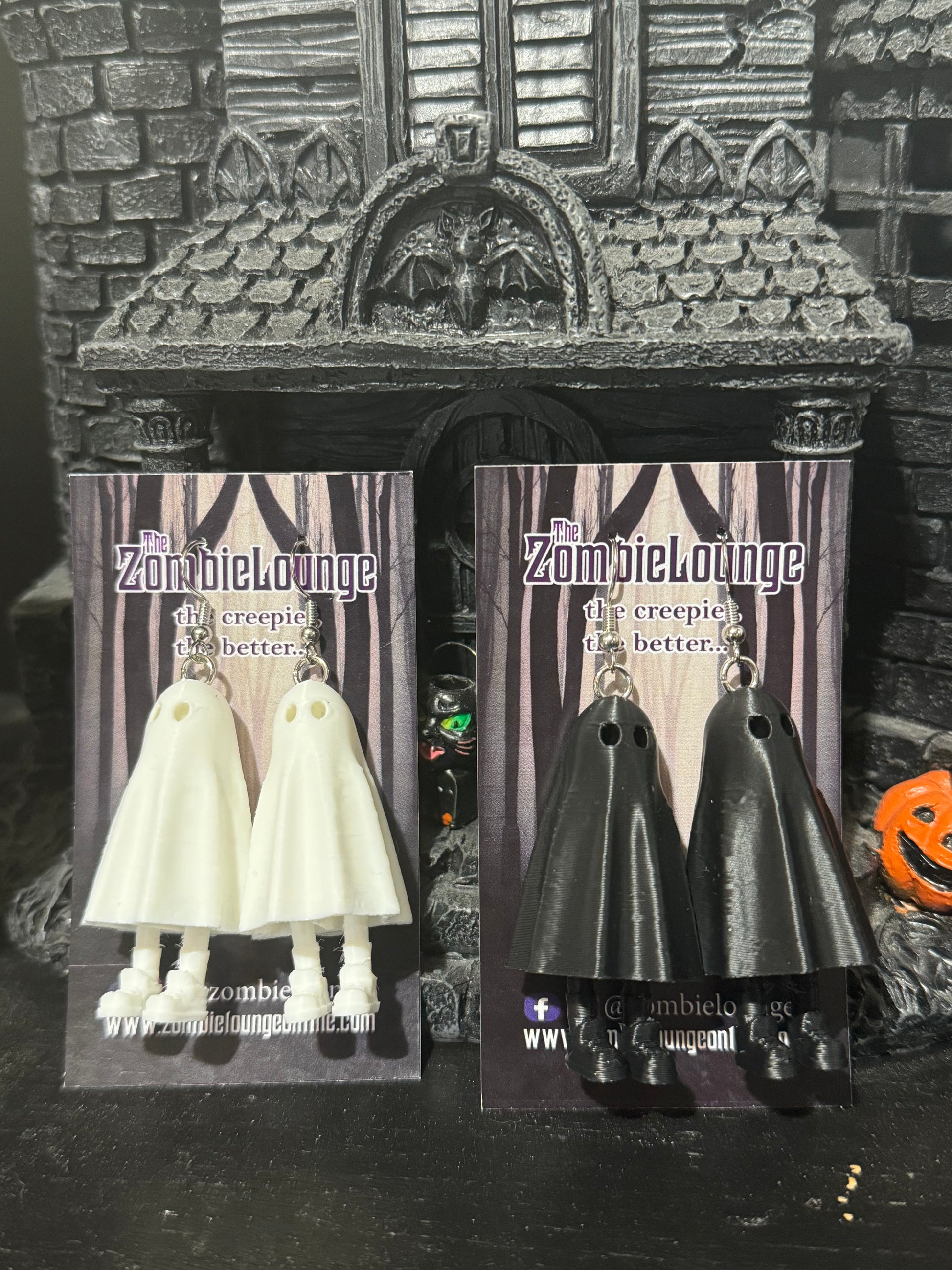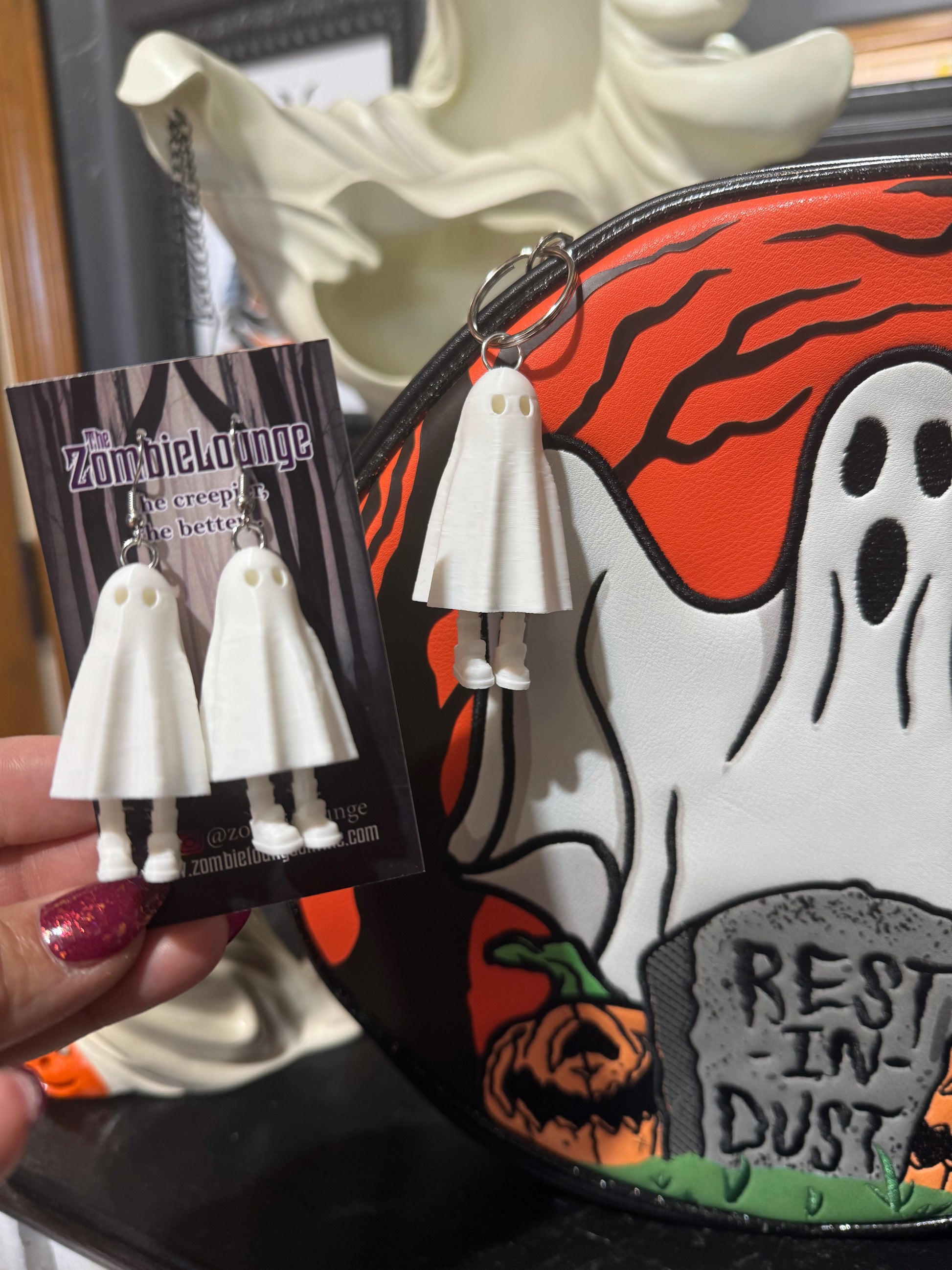 Super cute little ghost earrings with moving legs! Choose from black or white earrings or purse/bag charms