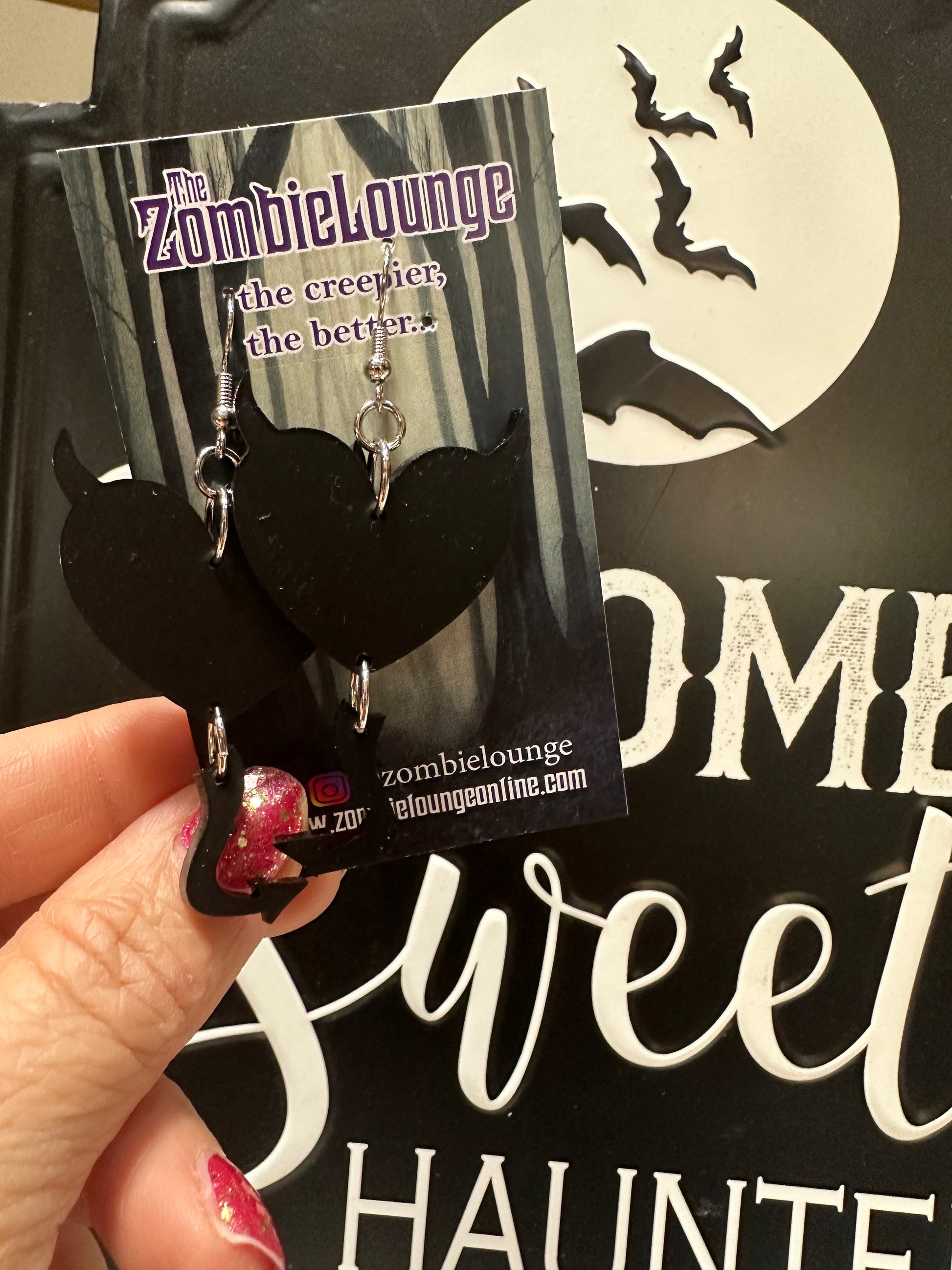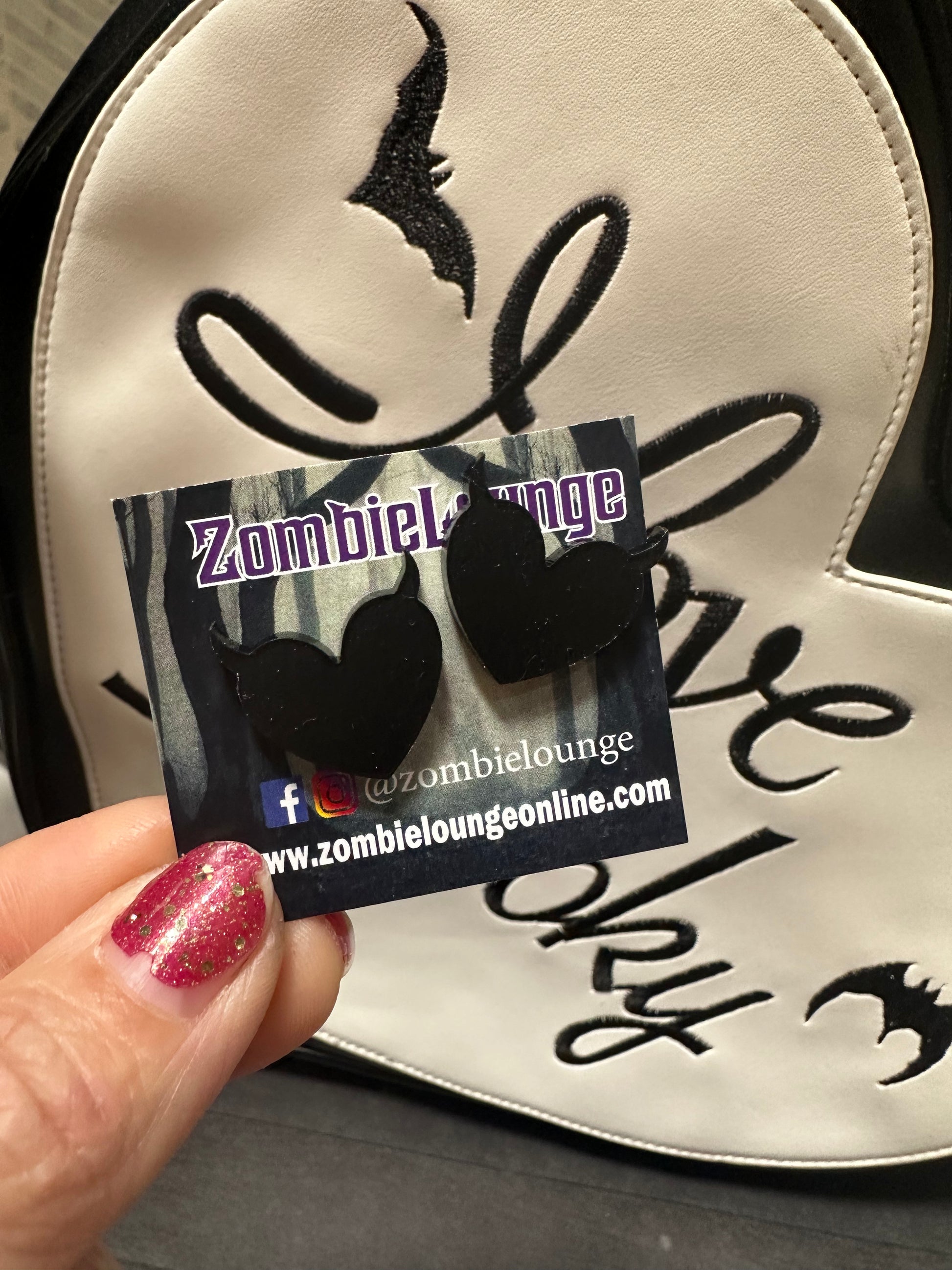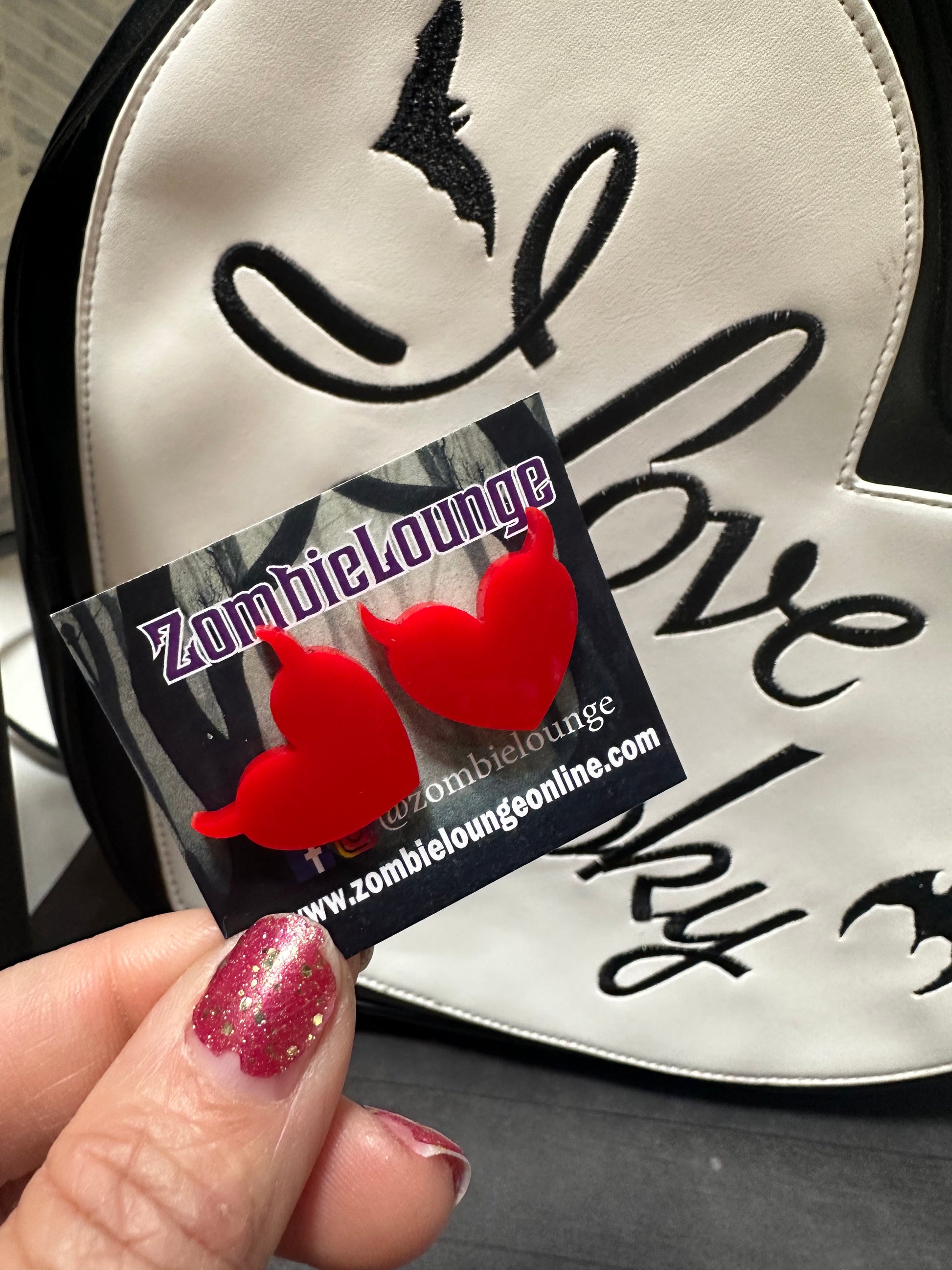 Acrylic Devil’s hearts earrings are perfect for the cute and creepy look! Choose from hanging or studs!