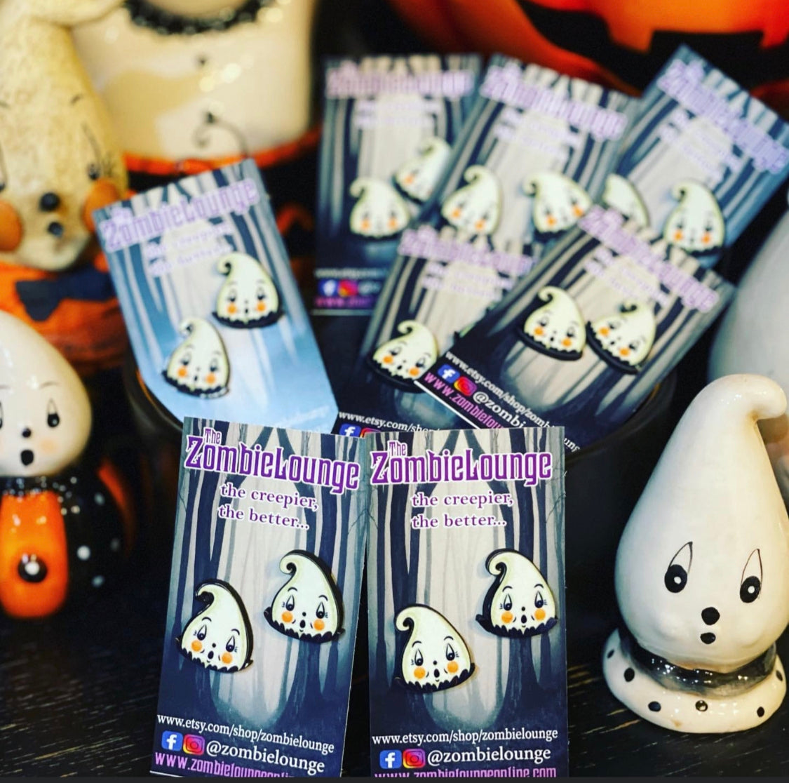 Ghost earrings made for Johanna Parker Partners in Crafts!!! Brand new handmade wooden ghost stud earrings. Perfect for everyday wear! Nickel free studs.