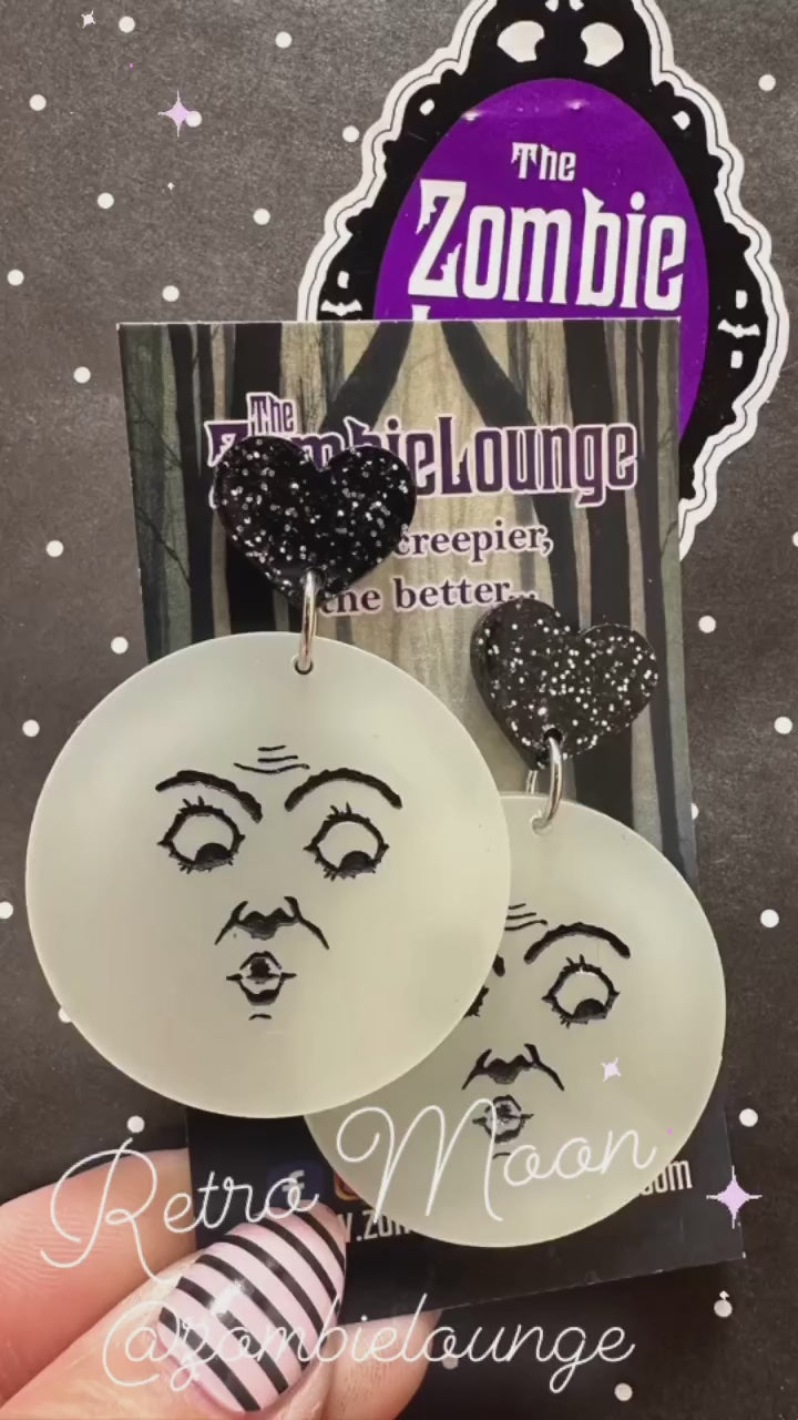 New earrings just listed in the shop!! Glow in the dark Retro Moon man hanging earrings