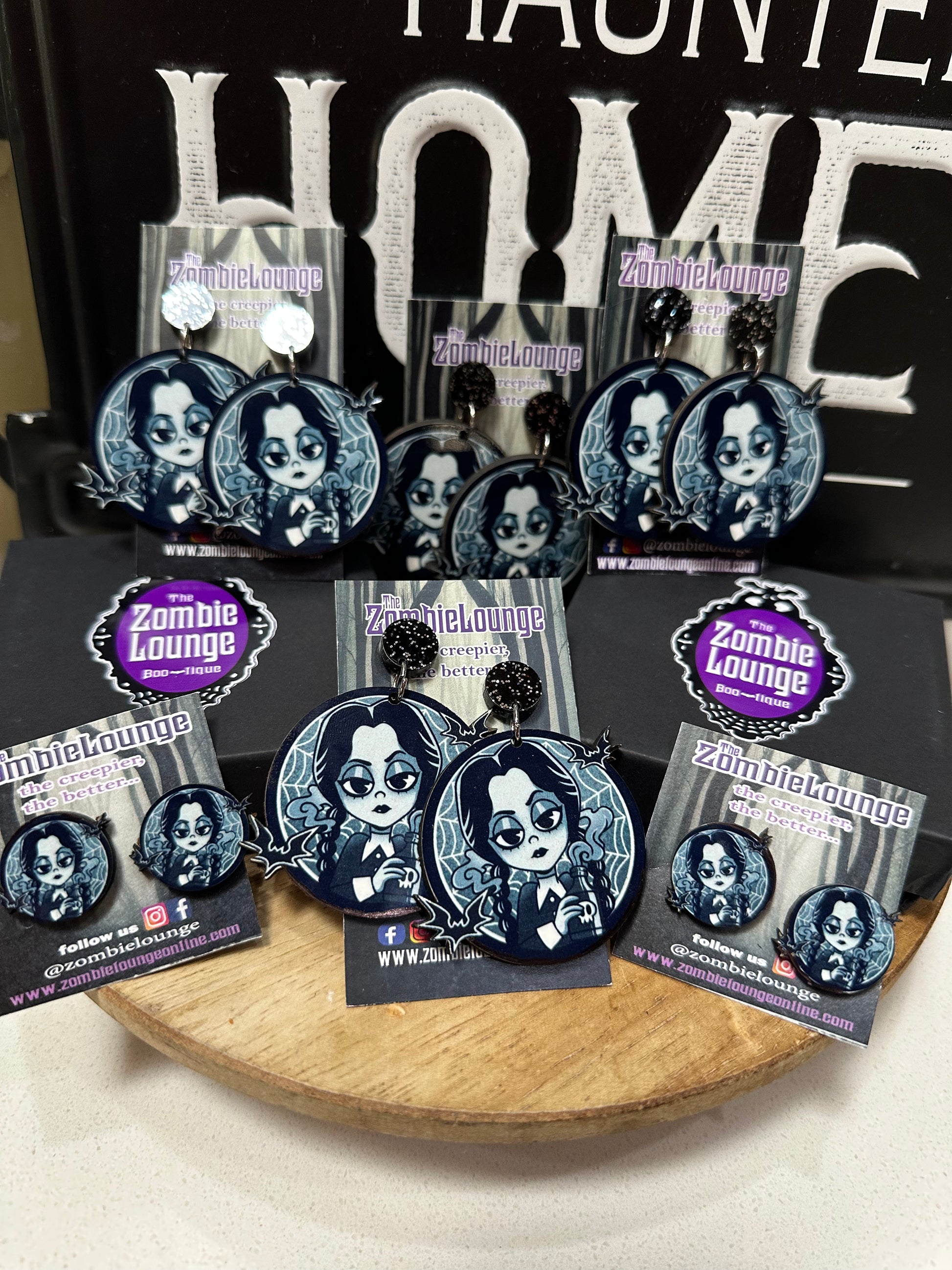 1930’s style Wednesday earrings. Choose from hanging or studs.